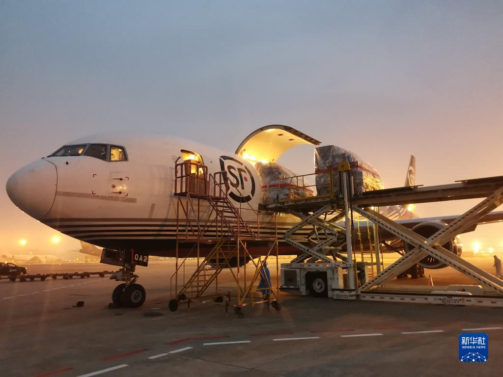 一架載有45噸物資的順豐航空貨運包機從深圳寶安國際機場(chǎng)飛往香港,深港兩地貨運包機航線(xiàn)正式開(kāi)通(2022年3月19日攝)。新華社發(fā)