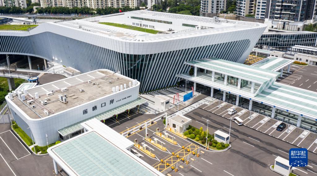 這是蓮塘/香園圍口岸(2020年8月26日攝,無(wú)人機照片)。該口岸是深港間第七座陸路口岸。新華社記者 毛思倩 攝