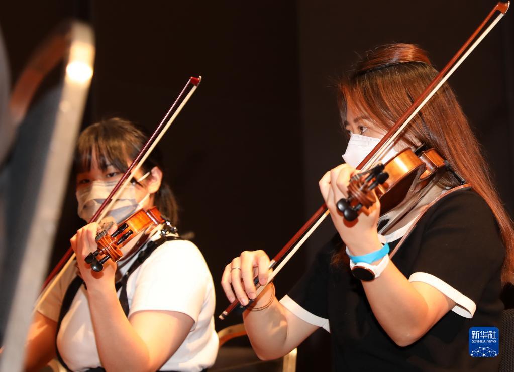 香港浸會(huì )大學(xué)交響樂(lè )團樂(lè )手在彩排中演奏(7月11日攝)。新華社記者 吳曉初 攝