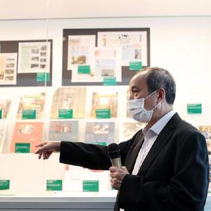 鄭寶鴻為香港書(shū)展做展覽介紹(7月19日攝)。新華社記者 李鋼 攝