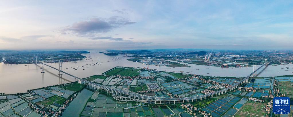 這是南沙大橋全景(2022年6月29日攝,無(wú)人機全景照片)。新華社記者 劉大偉 攝
