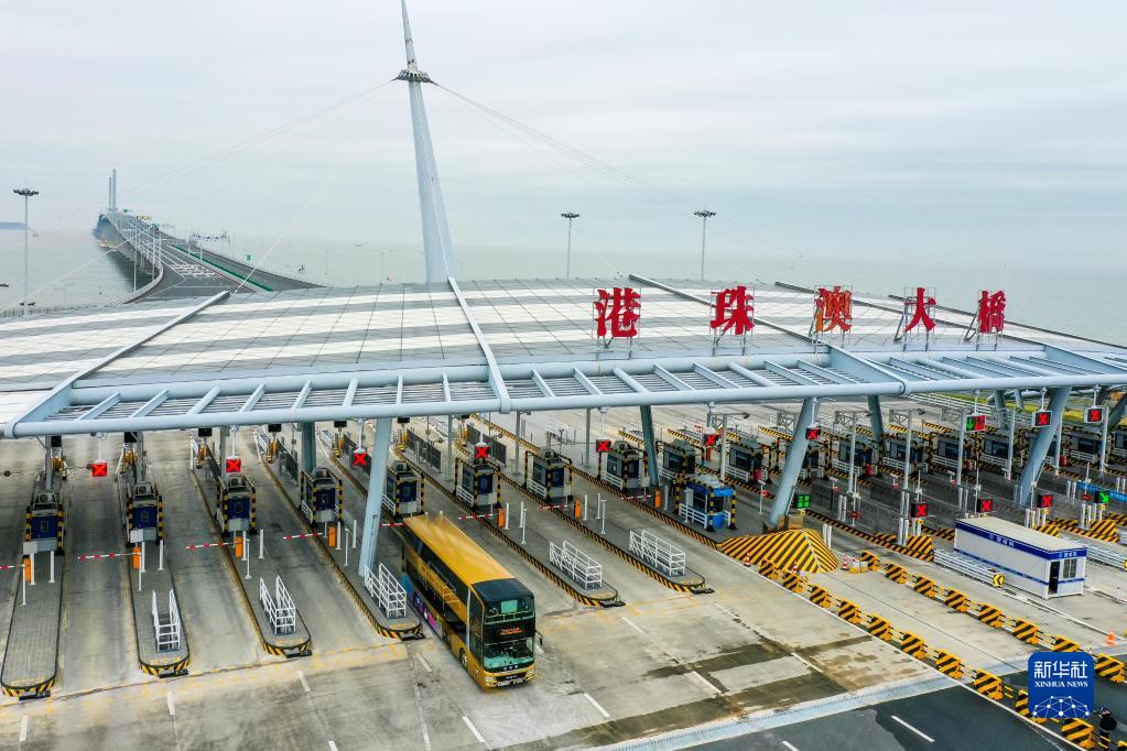 8日凌晨,載有27名香港出境旅客的穿梭巴士,離開(kāi)港珠澳大橋香港口岸,經(jīng)過(guò)約40分鐘的行駛,于0時(shí)42分抵達港珠澳大橋珠海公路口岸。這也是當日內地口岸迎來(lái)的首批香港入境旅客。