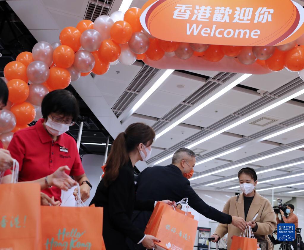 當天,在香港西九龍站,曾經(jīng)冷清的車(chē)站變得熱鬧起來(lái),不少旅客拖著(zhù)沉甸甸的行李箱,雖然戴著(zhù)口罩,但從眉眼中仍能看出他們踏上旅途的喜悅。