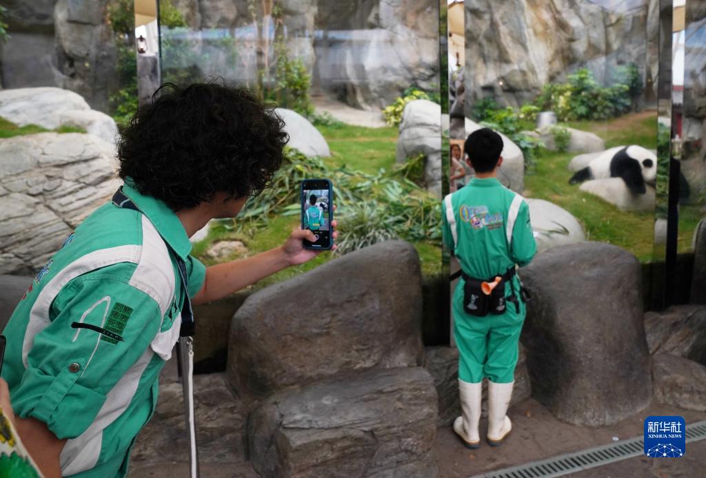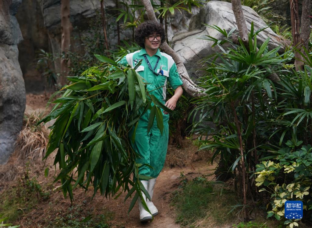看著(zhù)近距離互動(dòng)的“盈盈”,“奶爸”梁家綸趕緊用手機相機捕捉一些特寫(xiě)畫(huà)面。這名留著(zhù)“爆炸頭”的護理員,還會(huì )為公園的媒體賬號提供內容。