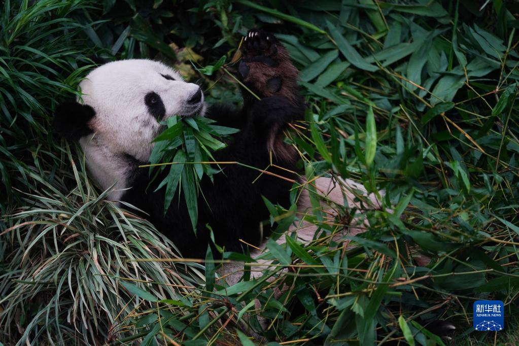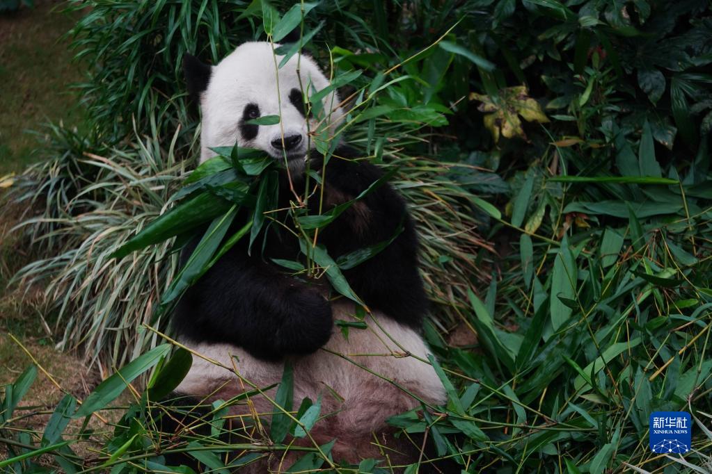 在香港海洋公園,大熊貓“樂(lè )樂(lè )”在吃早餐(4月19日攝)。新華社記者 王申 攝