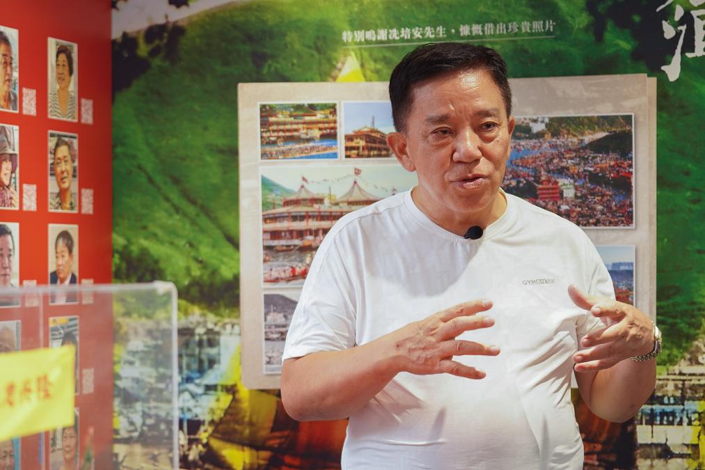 香港田灣街坊促進(jìn)會(huì )主席、南區龍舟競渡委員會(huì )主席陳富明接受采訪(fǎng)(7月16日攝)。新華社記者 龍鏡伊 攝