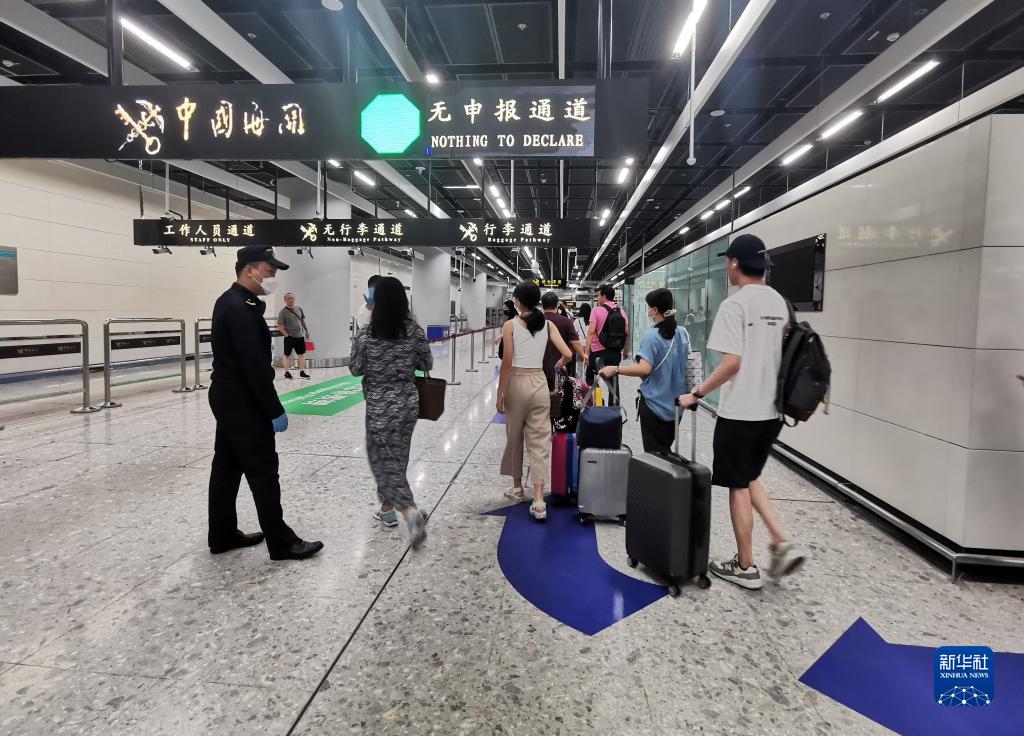 從香港西九龍站出發(fā),14分鐘就可到達深圳福田站。深圳海關(guān)所屬西九龍站海關(guān)副關(guān)長(cháng)張曉東介紹,自今年4月1日廣深港高鐵香港段長(cháng)途列車(chē)服務(wù)全面恢復以來(lái),截至6月底,西九龍站口岸日均出入境客流達到5.5萬(wàn)人次,已超過(guò)2019年平均數?!斑M(jìn)入7月暑期,日均達到6.5萬(wàn)人次,7月22日和23日連續兩天接近10萬(wàn)人次?!?/p>