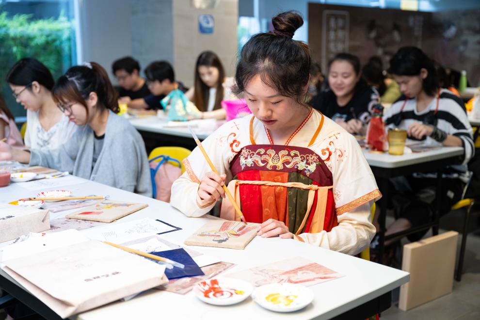 展覽設計了配套體驗活動(dòng),陜西歷史博物館工作人員為學(xué)生們詳細解讀唐墓壁畫(huà)中蘊含的各種知識。澳門(mén)大學(xué)生還動(dòng)手體驗壁畫(huà)繪制,加深對古代繪畫(huà)和服飾文化的理解。