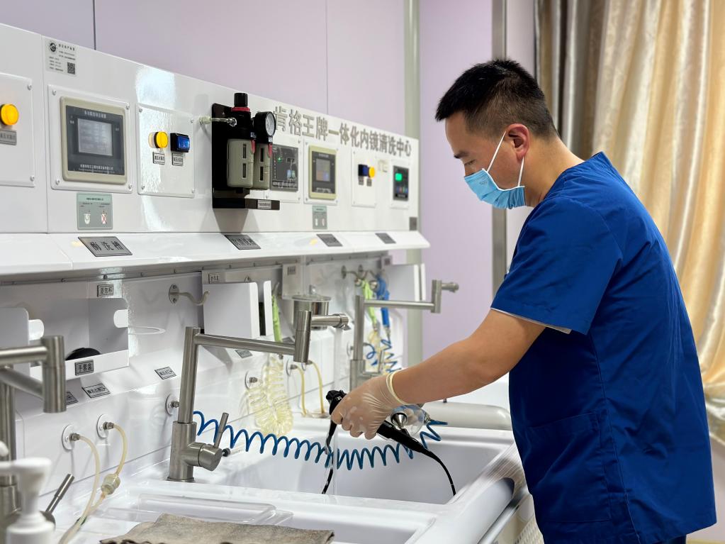 5月10日,韓進(jìn)海在清潔氣管鏡。新華社記者 張子琪 攝