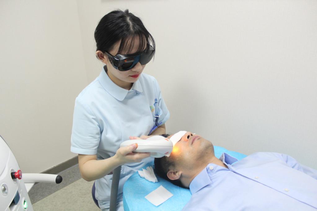 圖為6月3日,湖北武漢,干眼患者在武漢普瑞眼科醫院接受治療。新華社記者馬曉媛 攝