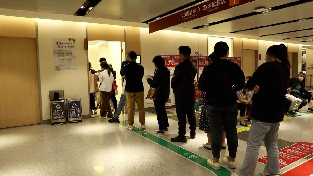 11月1日晚上7點(diǎn),記者來(lái)到河南省人民醫院急診部,在兒科急診室門(mén)口,二十多位帶著(zhù)孩子的家長(cháng)已經(jīng)排起了長(cháng)隊,等待看診。