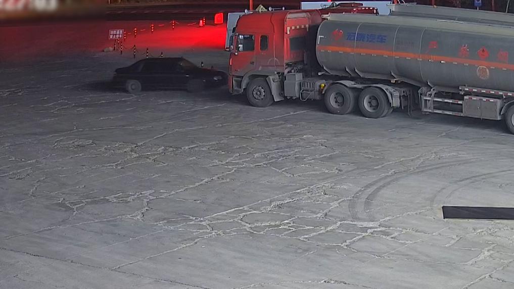 接警后,辦案民警第一時(shí)間調取了停車(chē)場(chǎng)周邊監控,發(fā)現一輛無(wú)牌黑色轎車(chē)停在大貨車(chē)旁邊,明目張膽地從大貨車(chē)油箱內抽走了柴油。
