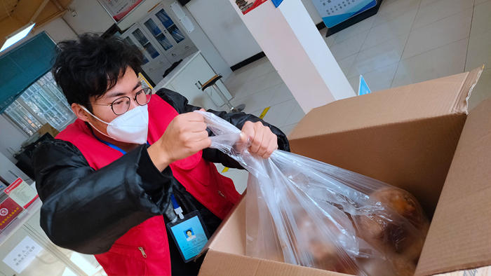 陸遠在社區整理物資。(受訪(fǎng)者提供)