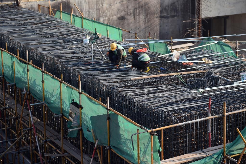 1月5日,工人在雄安新區首都醫科大學(xué)宣武醫院雄安院區項目工地施工。新華社記者 駱學(xué)峰 攝