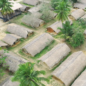 在海南,像初保村一樣保持原貌的黎族傳統村落,還有位于東方市江邊鄉的白查村,這里地勢平坦,80多間茅草房整齊排列,頗成陣勢。