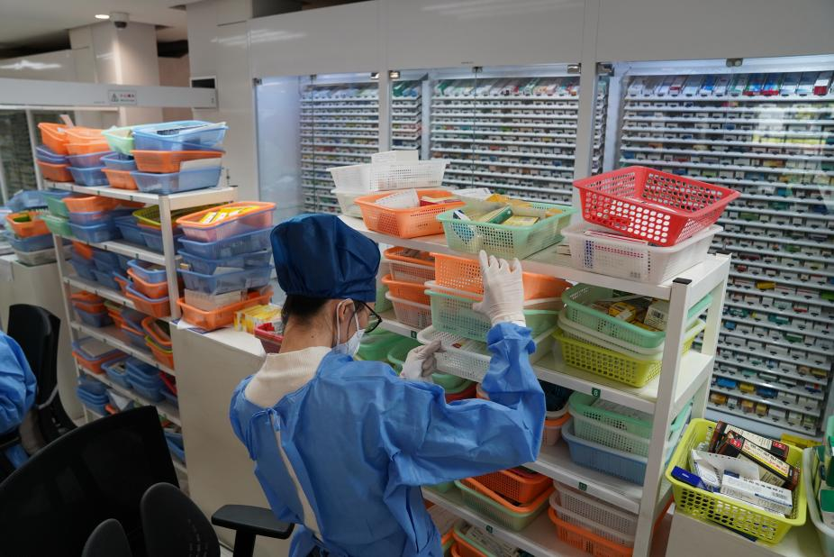 在同仁醫院藥房,一名工作人員按照用藥需求單配藥。(新華社記者袁全攝)