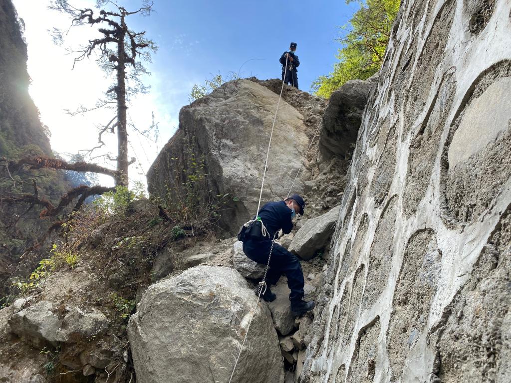 絨轄邊境派出所民警吊著(zhù)繩索巡邊。受訪(fǎng)者供圖