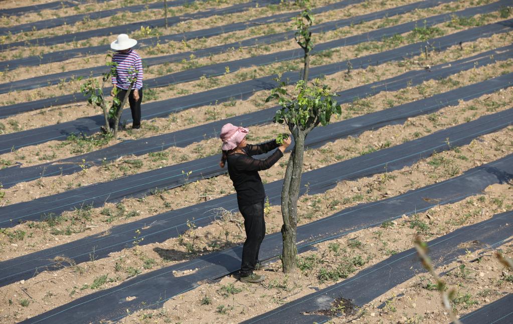 瓦窯村村民在果園里勞作。 新華社記者潘德鑫 攝