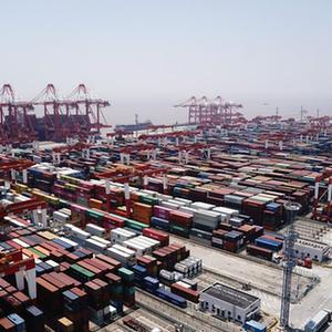 5月17日拍攝的上海洋山深水港四期自動(dòng)化碼頭。 新華社記者 丁汀 攝