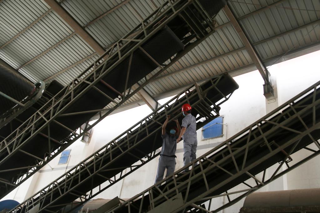 臨漳縣西關(guān)益農糧食儲備庫工作人員在檢修設備。(受訪(fǎng)單位供圖)