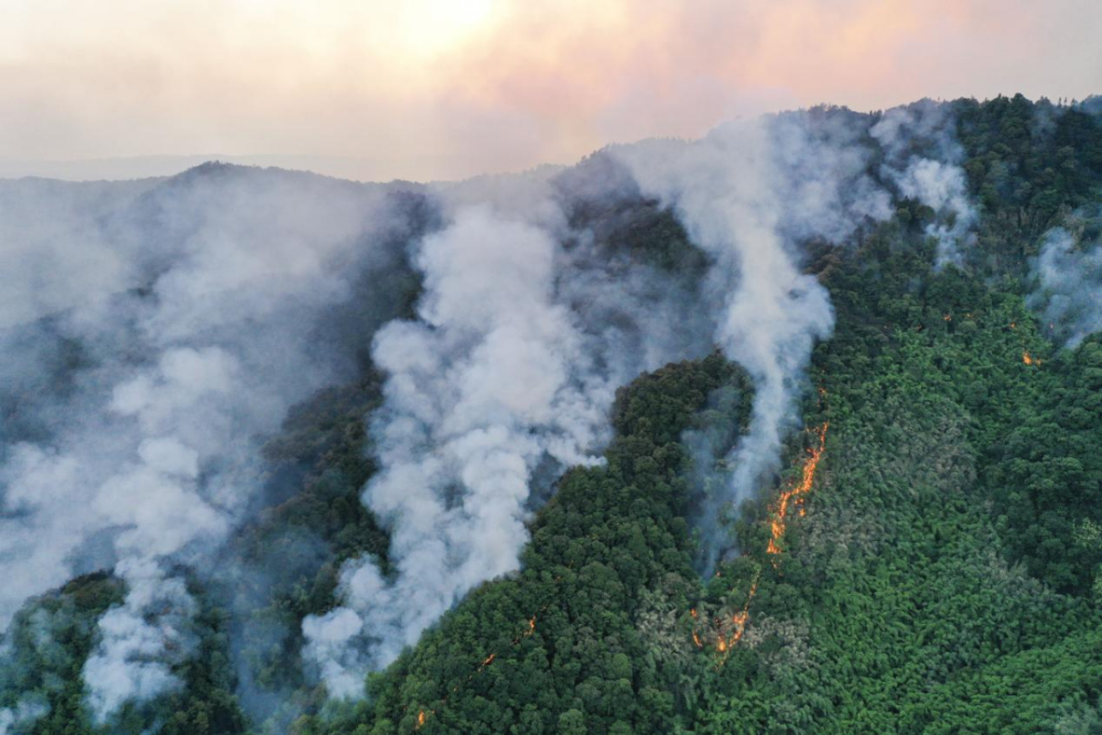當晚,一張經(jīng)典的照片在各大社交平臺上流傳著(zhù)——山火現場(chǎng),左邊是熊熊的烈火,右邊是站在隔離帶旁,成千上萬(wàn)救援人員串起的一條“白色燈鏈”。
