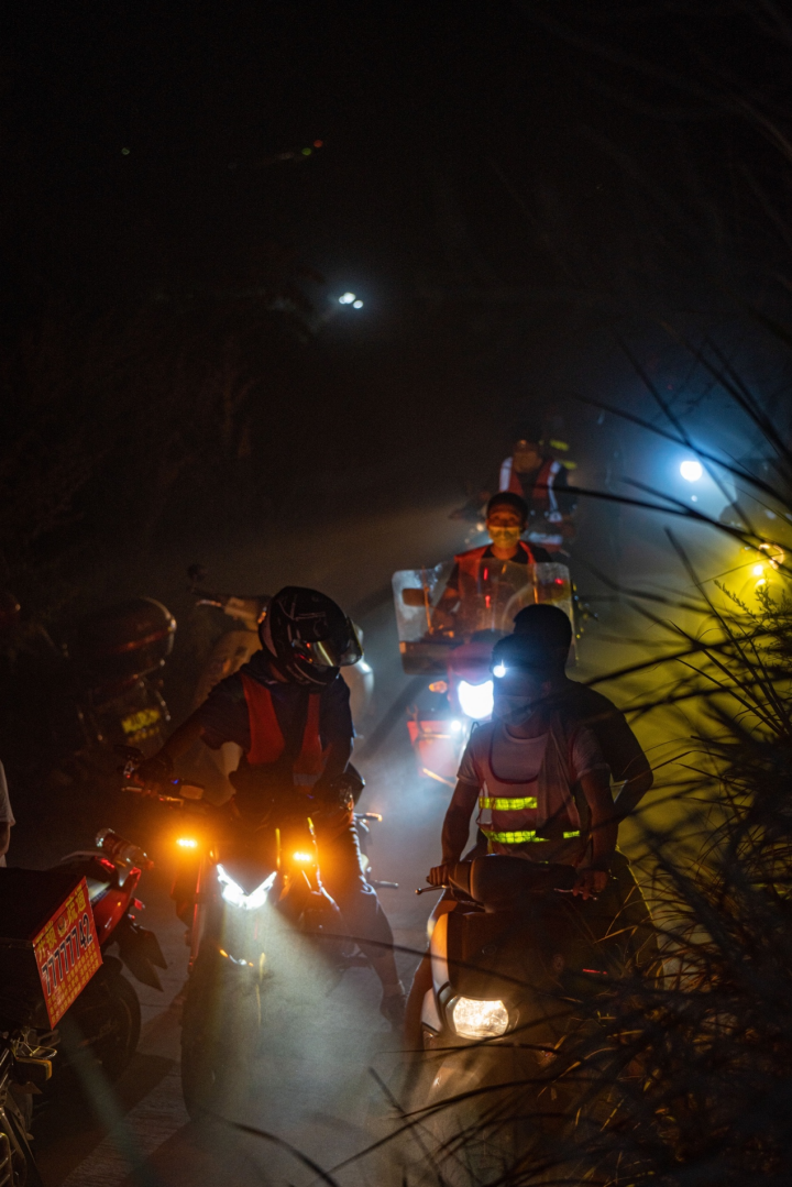 他們沒(méi)想到,在他們上山接人下山的同時(shí),越來(lái)越多新來(lái)的志愿者此時(shí)跟在他們身后,一起上山。這些摩托車(chē)騎手們,在這個(gè)夜晚,猶如一條發(fā)光的“小龍”,快速地“游”進(jìn)了大山深處。