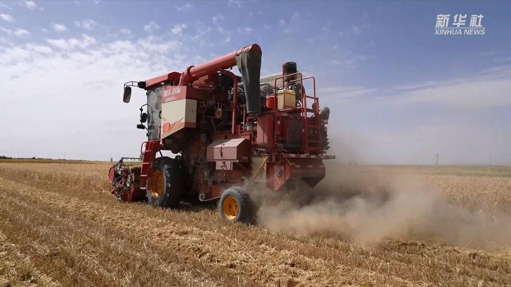 在位于柴達木盆地東南部的青海省海西蒙古族藏族自治州都蘭縣,當地政府全力統籌疫情防控和秋季農業(yè)生產(chǎn)“兩不誤”,集中人力機械,抓住天氣晴好時(shí)機,適時(shí)組織搶收,確保顆粒歸倉。