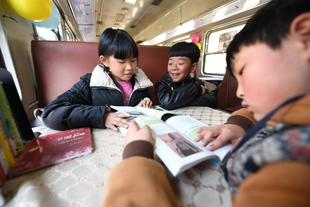 列車(chē)為孩子們專(zhuān)門(mén)設置了學(xué)習車(chē)廂