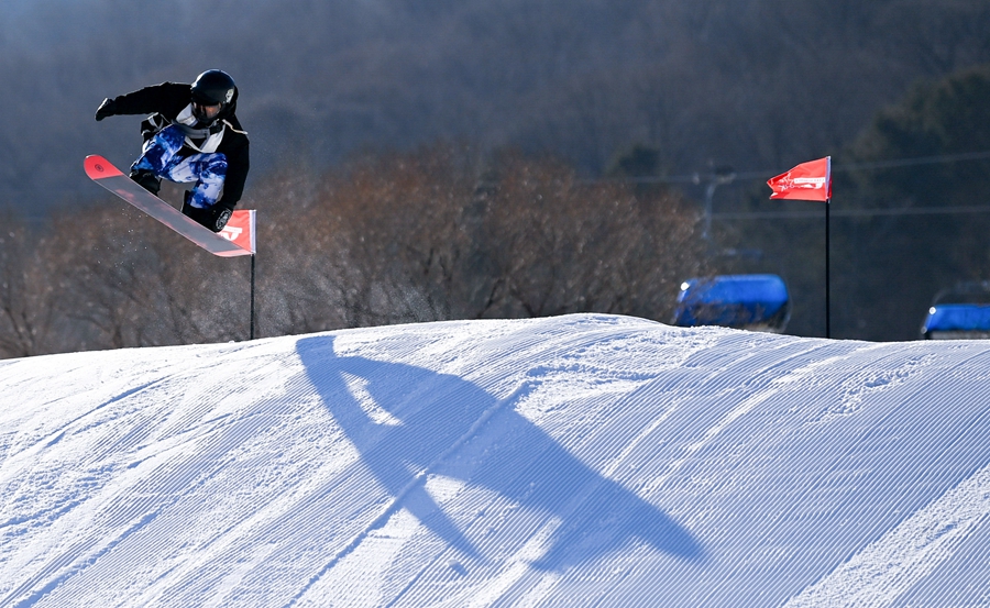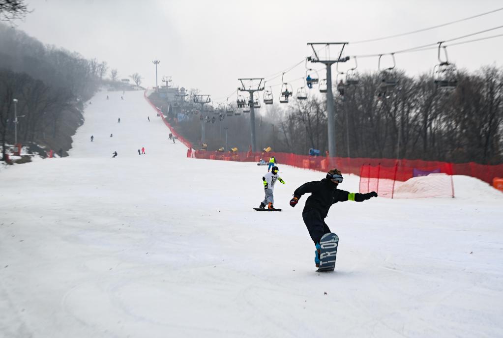 滑雪愛(ài)好者在長(cháng)春市廟香山滑雪場(chǎng)體驗雪季“開(kāi)板”快樂(lè )。