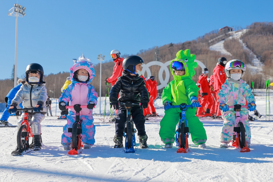 在長(cháng)白山某滑雪場(chǎng),小朋友們體驗雪地平衡車(chē)