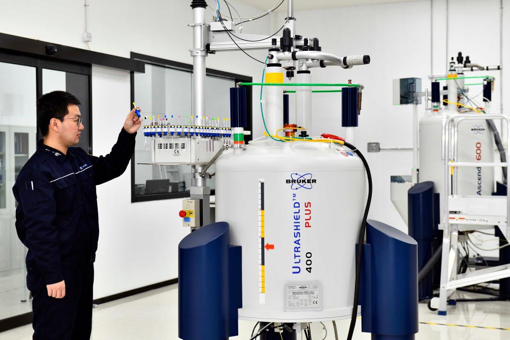 在萬(wàn)華化學(xué)集團磁山全球研發(fā)中心,科研人員在做實(shí)驗。(新華社記者郭緒雷 攝)