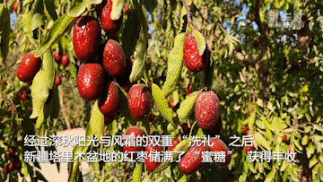 經(jīng)過(guò)深秋陽(yáng)光與風(fēng)霜的雙重“洗禮”之后,新疆塔里木盆地的紅棗儲滿(mǎn)了“蜜糖”,獲得豐收。