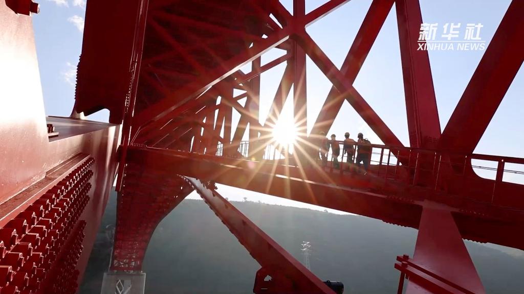 中老鐵路元江雙線(xiàn)特大橋飛跨元江,大橋長(cháng)約832米,橋墩最高154米,相當于50多層樓的高度。
