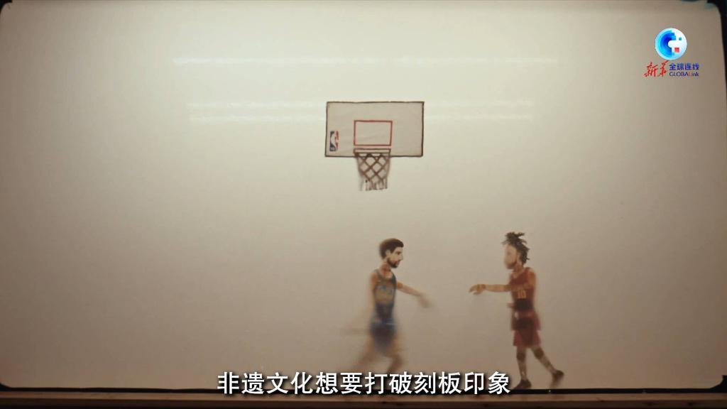 2022年底,NBA中國與劉朝侃團隊達成合作,在村里的老戲臺為村民獻上了一場(chǎng)特別的皮影表演:在百年戲臺上演皮影版的美職籃(NBA)籃球賽,村里的老老少少齊聚戲臺下觀(guān)看。