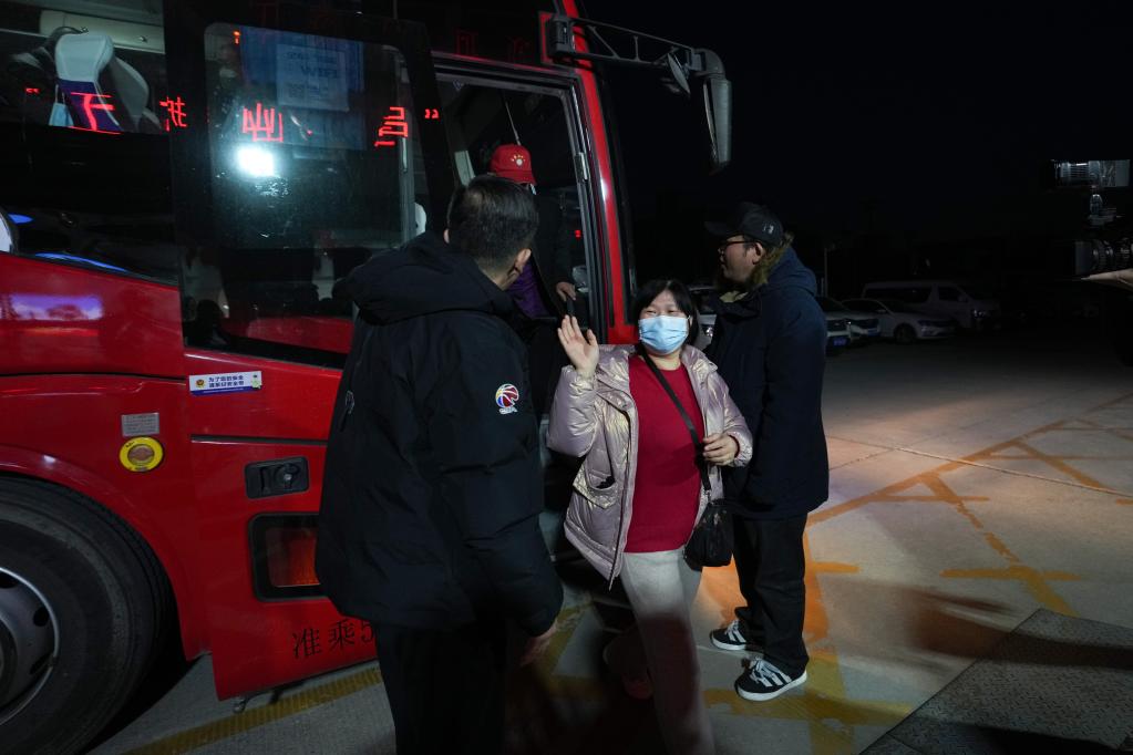 2月4日,呂梁護工復工專(zhuān)車(chē)抵達北京市房山區今日東方培訓基地。新華社記者 鞠煥宗 攝