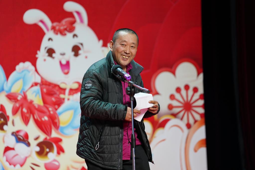2月4日,在北京市房山區今日東方培訓基地,呂梁護工代表任吉祥在歡迎儀式上發(fā)言。新華社記者 鞠煥宗 攝