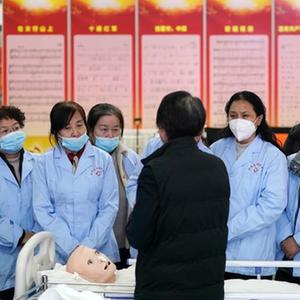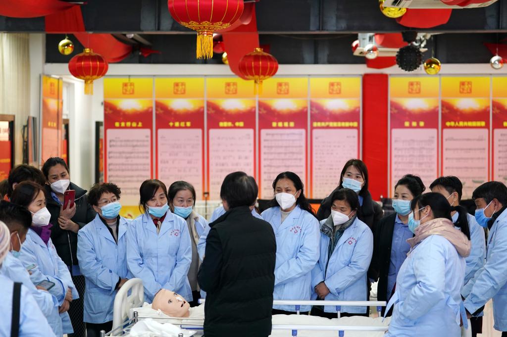 2月4日,在北京市房山區今日東方培訓基地,首批抵京的呂梁護工在參加護理培訓課程。新華社記者 鞠煥宗 攝