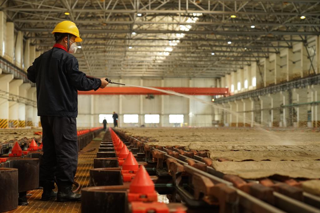 春節后,記者來(lái)到位于青海省西寧市甘河工業(yè)園區的青海銅業(yè)有限責任公司。電解車(chē)間里,天車(chē)來(lái)回穿梭、機械臂不停運轉,生產(chǎn)線(xiàn)上的工人們爭分奪秒生產(chǎn)。作為一家電解銅生產(chǎn)企業(yè),這家企業(yè)去年11月完成陰極銅改造擴能項目,如今,年產(chǎn)能達到15萬(wàn)噸。