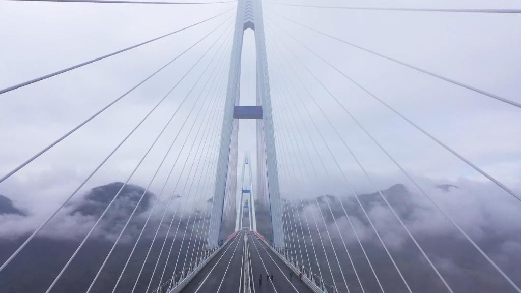 2019年建成通車(chē)的平塘特大橋,全長(cháng)2135米,橋面寬30.2米,橋面距河面高差300米,主跨跨度達550米。橋塔采用鉆石形設計,主塔高達332米,相當于110層樓高,是世界最高的混凝土橋,也被譽(yù)為最美的“天空之橋”。