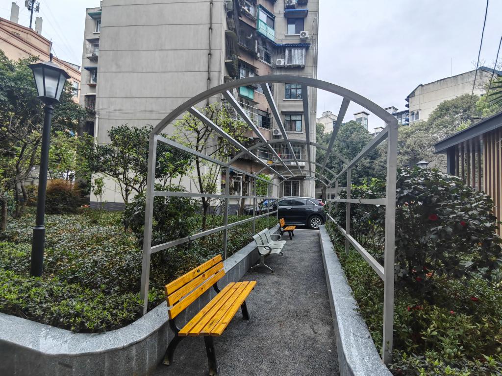 成都同馨苑小區在改造中根據居民意見(jiàn)新建了花架。新華社記者董小紅 攝
