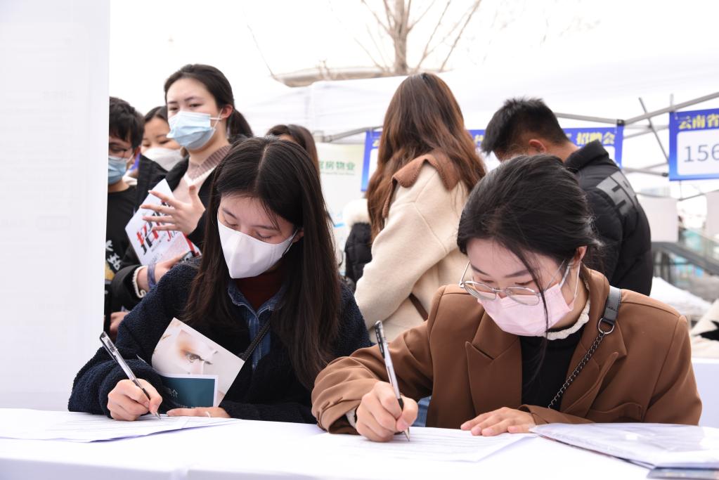 求職者在云南省舉行的招聘活動(dòng)上填寫(xiě)求職信息。新華社記者林碧鋒 攝