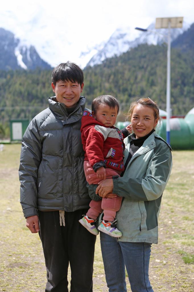 白瑪德吉和丈夫殷合以及孩子的合影。新華社記者 邵澤東 攝