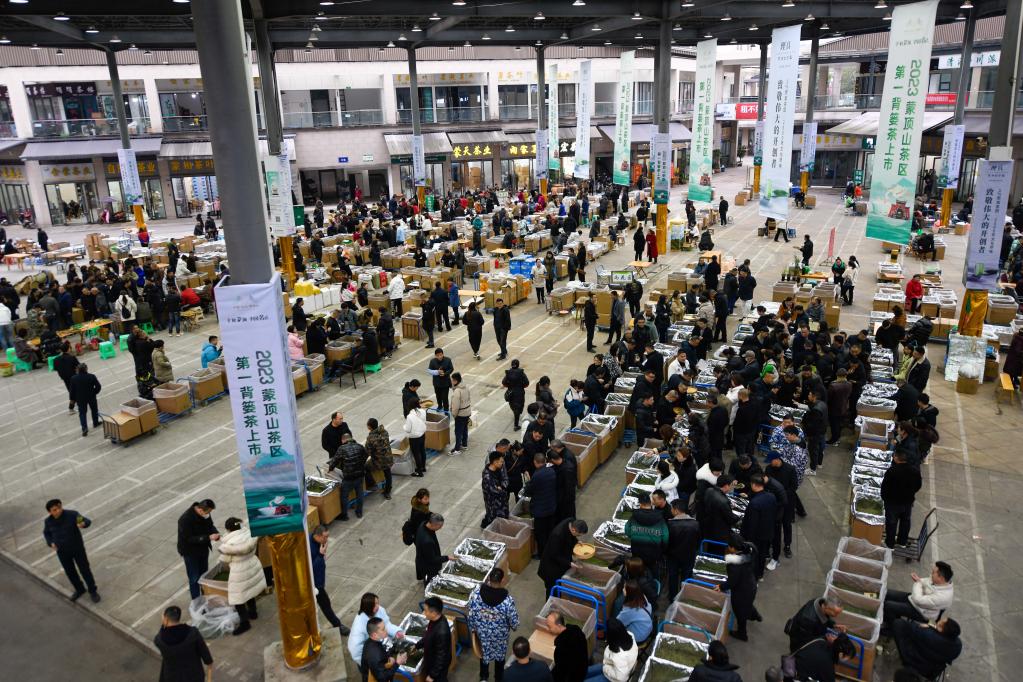 制茶師傅忙碌的同時(shí),位于名山區最繁華地段的世界茶都茶葉交易市場(chǎng)迎來(lái)了喧鬧的清晨。早上7點(diǎn),來(lái)自全國各地的客商已經(jīng)涌入這里挑選茶葉。