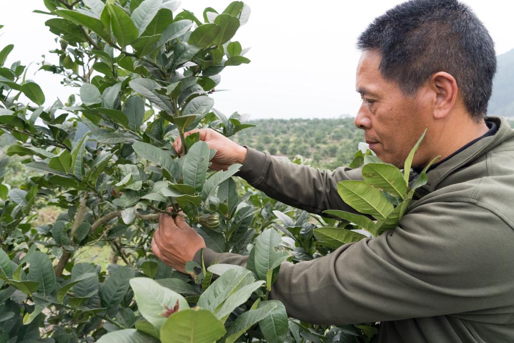 在四川省樂(lè )山市沙灣區太平鎮綠化村川佛手標準化種植基地,種植大戶(hù)范成義在查看長(cháng)勢(3月15日攝)。新華社記者 唐文豪 攝