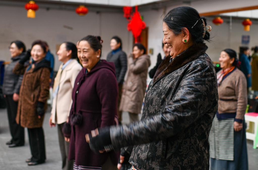 “2017年我們在群藝館開(kāi)設面向社會(huì )的免費課堂以來(lái),每年僅群藝館就有超過(guò)400人報名,加上拉薩市和各地的學(xué)員,到現在學(xué)員總數已超過(guò)8000人?!蹦岈攤}曲說(shuō),如今西藏各大小公園、社區隨處可見(jiàn)跳囊瑪堆諧的各族群眾。