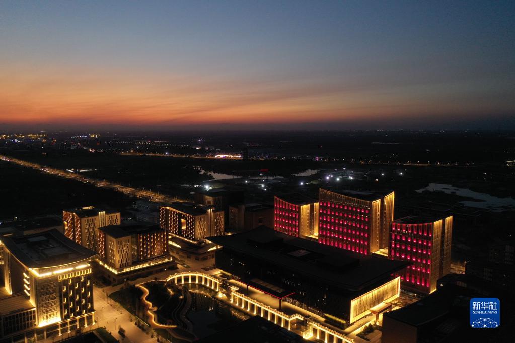 這是雄安新區商務(wù)服務(wù)中心夜景(2022年9月7日攝,無(wú)人機照片)。新華社記者 朱旭東 攝