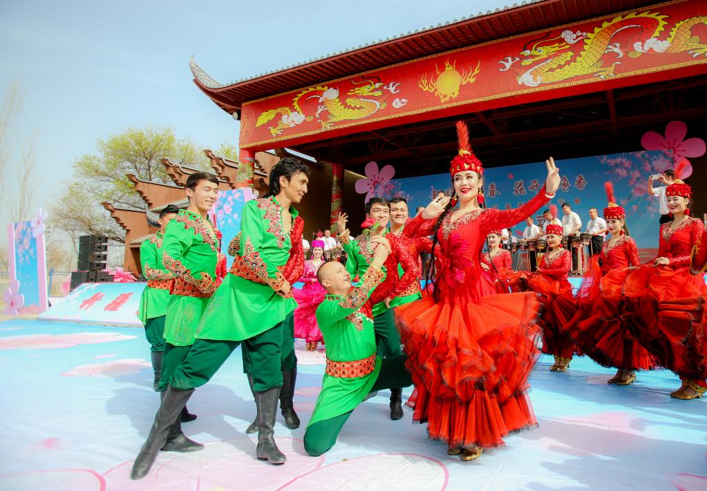 3月18日,演員在“新疆第一春·花開(kāi)吐魯番”2023吐魯番杏花節開(kāi)幕式上表演。新華社記者 郝昭 攝