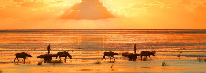江蘇南通南黃海日出美景和海子牛。(資料照片,許叢軍攝)