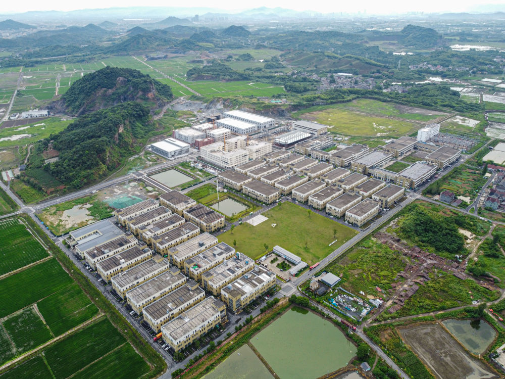 這是2022年7月22日拍攝的浙江德清縣洛舍鎮東衡村鋼琴眾創(chuàng )園(無(wú)人機照片)。新華社記者 江漢 攝
