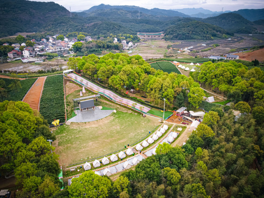 這是2023年3月29日拍攝的諸暨市楓橋鎮陽(yáng)春村陽(yáng)春山月游樂(lè )度假村(無(wú)人機照片)。當地通過(guò)閑置荒山土地流轉發(fā)展鄉村旅游,幫助當地村民和村集體增收。新華社記者 江漢 攝